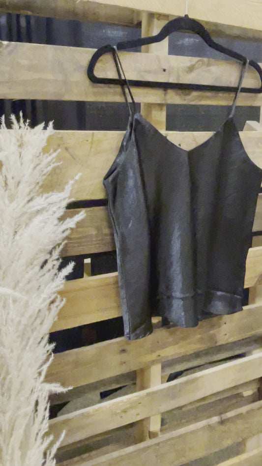 Subtle Spark | Light Khaki Satin Button Up Woven Top