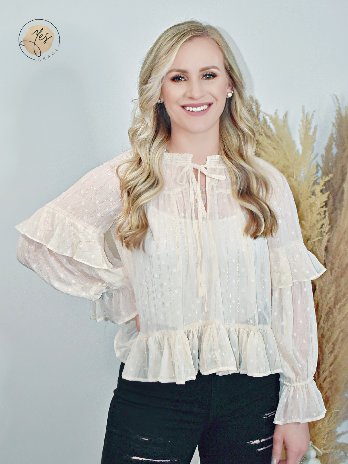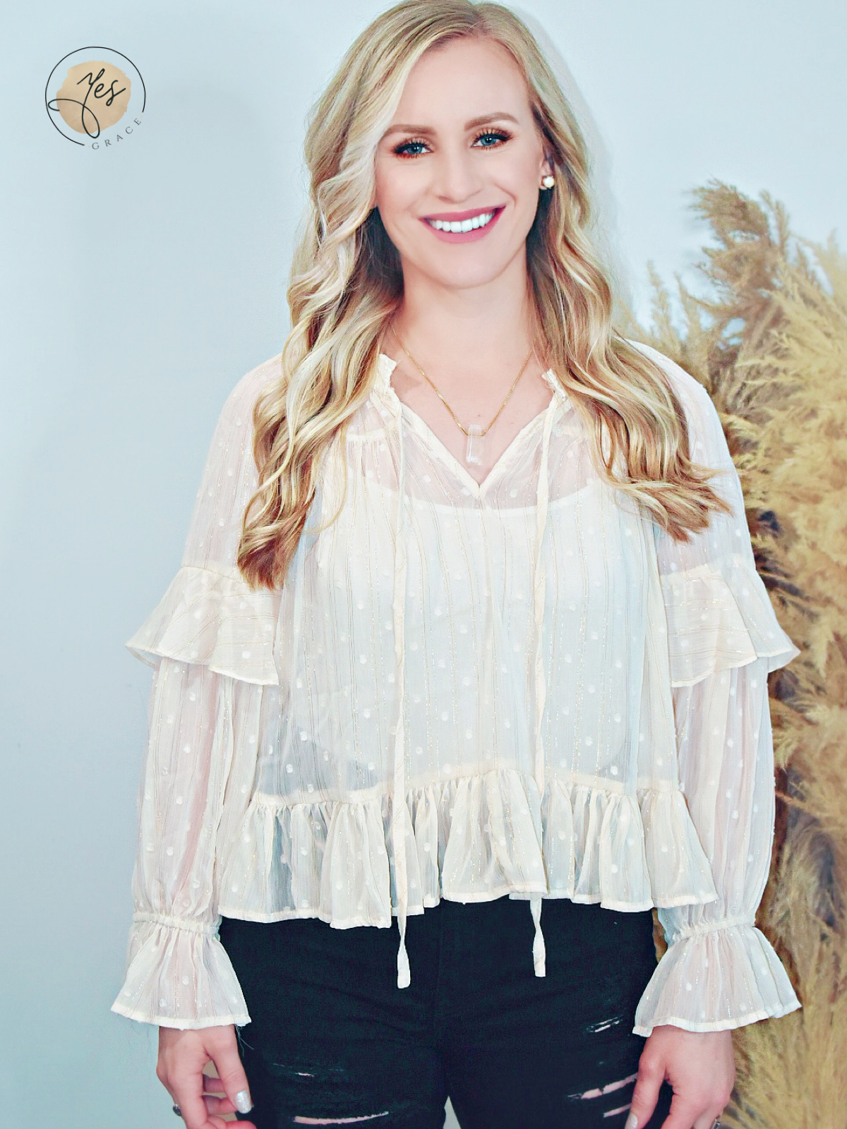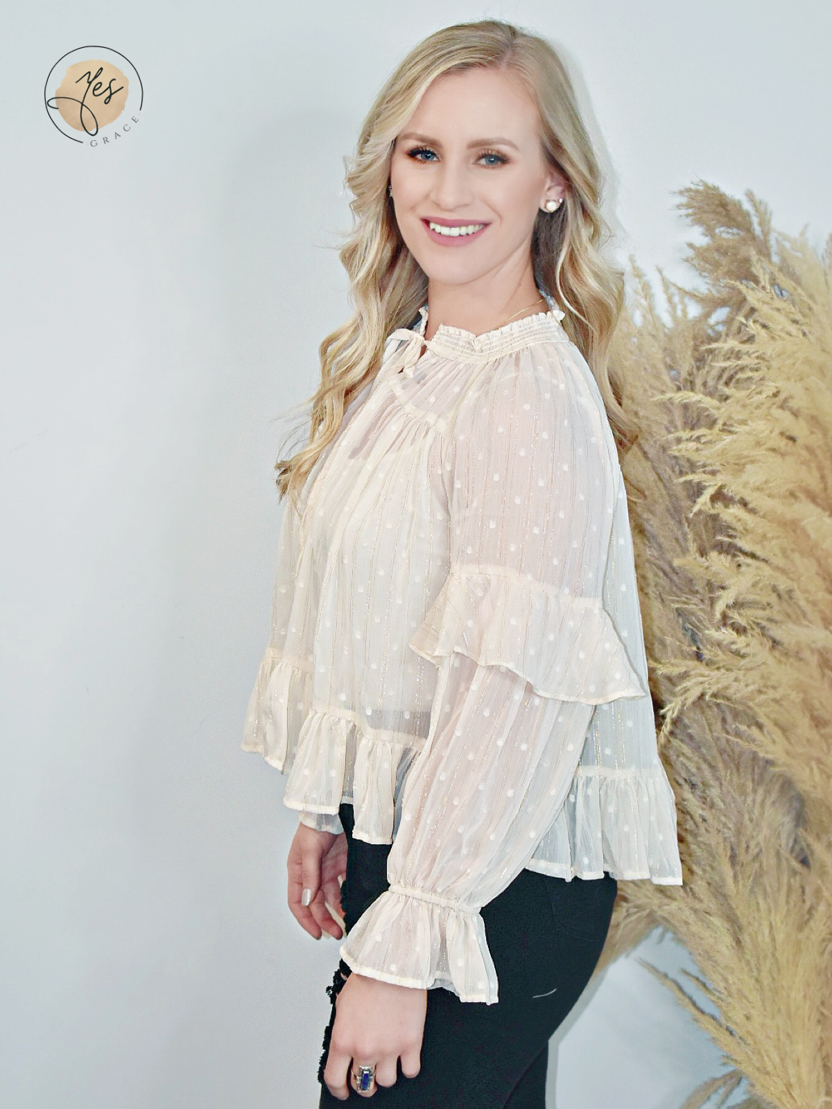 Whimsical Wheat Fields | Clip Dot Blouse - Champagne