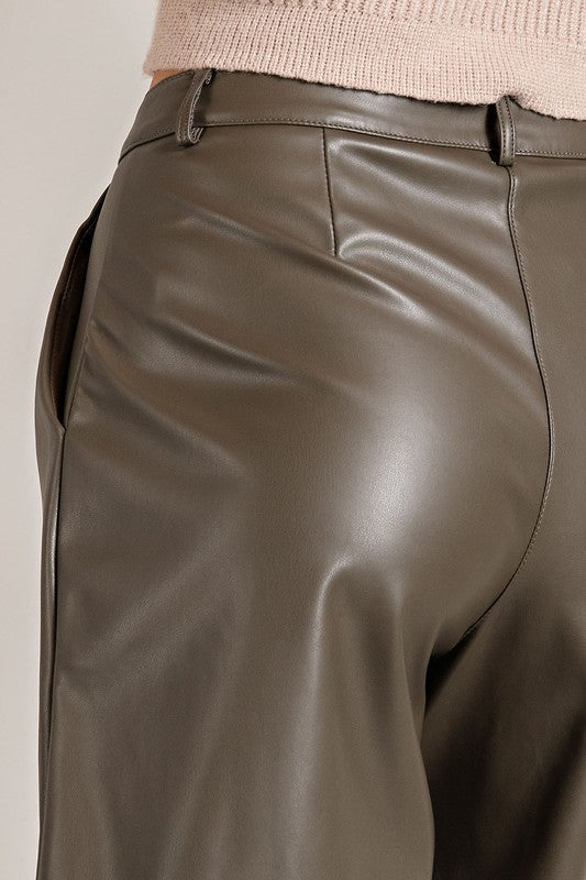 Jillian | Faux Leather Bermuda Shorts | Olive